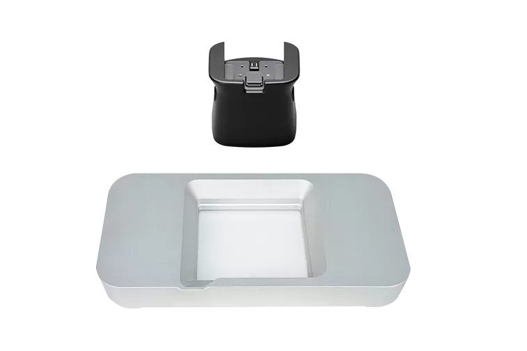 Imprimanta 3D Edge Mini dispune de doua optiuni de platforma: o platforma mare asociata cu un rezervor de rasina cu capacitate mare, ideala pentru productia personalizata si de inalta precizie a unor modele precum gutiere transparente si modele complexe si o platforma mica cu rezervor de rasina mai mic, potrivita pentru printari fine, cum ar fi coroanele temporare.